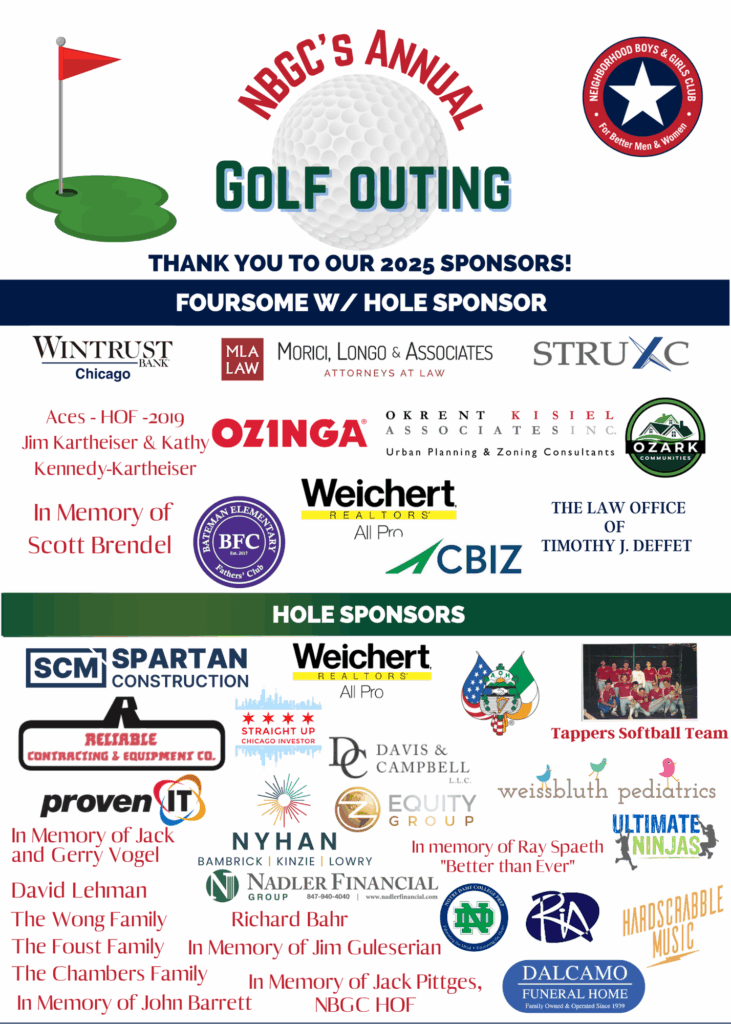 Join us for a great day of golf in support of the Neighborhood Boys & Girls Club! Now in its 56th year, this annual outing brings together NBGC alumni, families, friends, and supporters for an afternoon of fun, community, and fundraising.